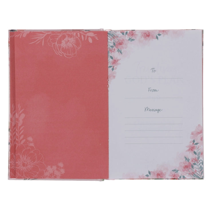 When life is messy and the outcomes uncertain, the Trusting in God's Plan Pink Hardcover 90-Day Devotional will help you discover that God has a purpose for all pain and suffering. Authors Carolyn Larsen and Cori Cheek beautifully illustrate this profound insight through 90 devotions. Full-color floral cover design, Pink-foiled accents, Pink foil accents and black-lettered title hardcover, Two-color interior, Satin ribbon marker, 188 foil-edged pages, 90 devotions, Size: 7.2" x 4.8" x 0.4" 188 x 122 x 10mm)