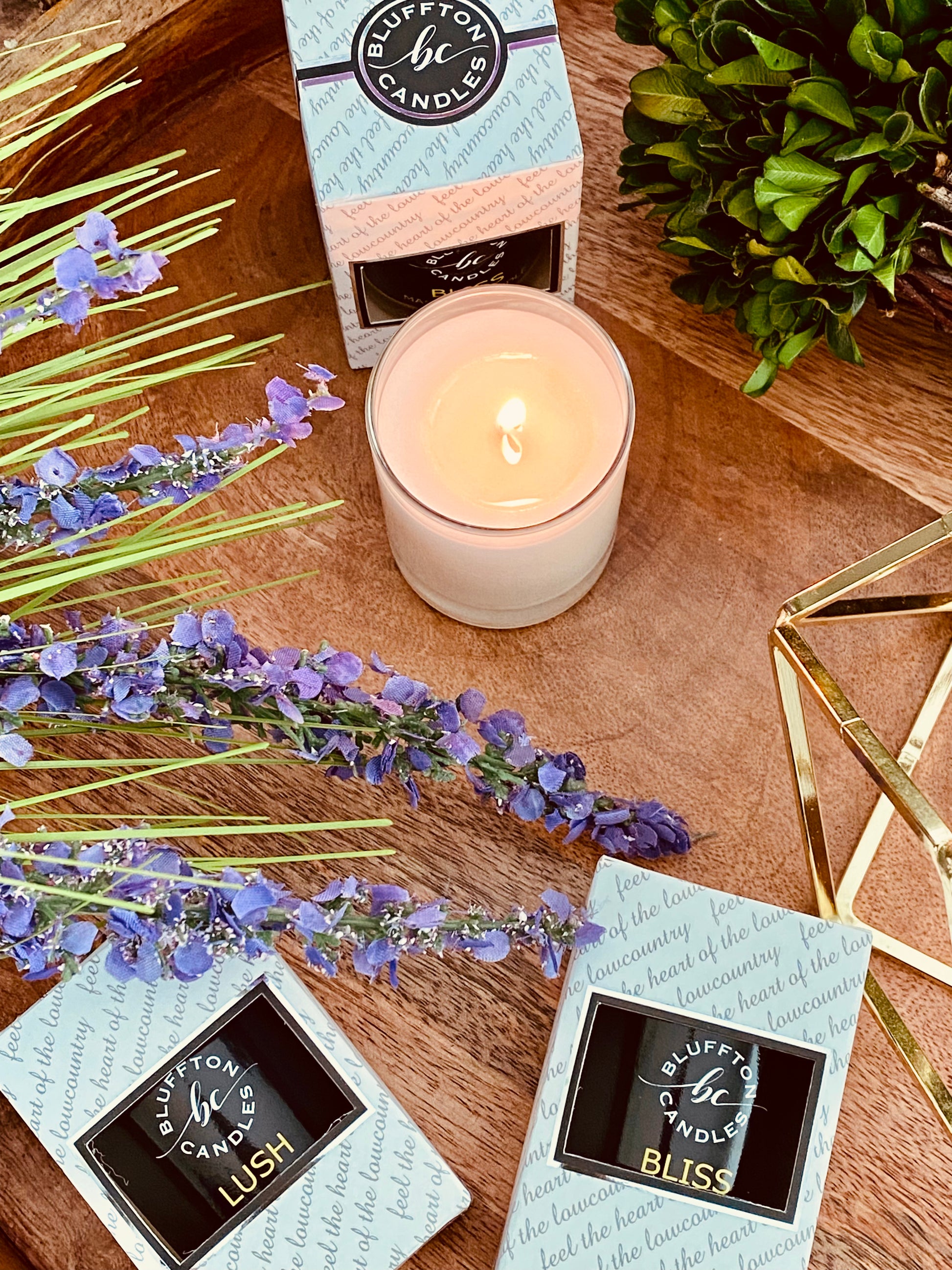 This product has soy wax infused with Cocoa Butter, Shea Butter, Avocado Oil & Phthalate-Free Fragrance oil infused with essential oil that is body-safe. Uses 100% cotton, lead and zinc free wicks. For adult external use only. Consult your physician before using especially if you're pregnant, nursing, has sensitive skin & prone to allergies. We recommend you do a patch test before using & use your discretion if our product is right for you. If allergies occur, STOP using & consult your doctor immediately. Bluffton Candles accept NO liability for misuse of our products.